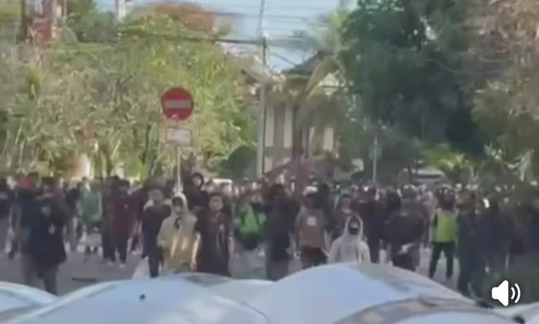 jarrakposbali.com, DENPASAR – Aksi unjuk rasa di depan Markas Kepolisian Daerah (Mako) Bali, Jalan WR Supratman Denpasar, Sabtu (30/8/2025), berakhir ricuh.