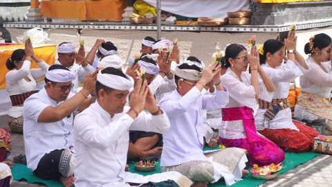 “Dumogi pujawali memargi antar lan sareng sami ngemolihang kerahayuan,” ucap salah seorang sulinggih yang memimpin jalannya upacara, mengalirkan doa bagi keselamatan semesta.