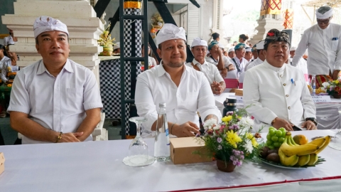 Wakil Bupati Badung Bagus Alit Sucipta tampak hadir menyatu dengan masyarakat, bersama jajaran DPR RI, DPD RI, DPRD Provinsi Bali, DPRD Badung, serta perangkat desa dan tokoh masyarakat.