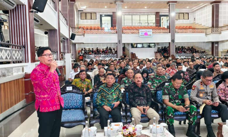 Kegiatan berlangsung di Auditorium Widya Sabha, menghadirkan Wakil Menteri Hukum RI, Edward Omar Sharif Hiariej, bersama Kepala Kanwil Kemenkum Bali Eem Nurmanah dan Rektor Universitas Udayana.