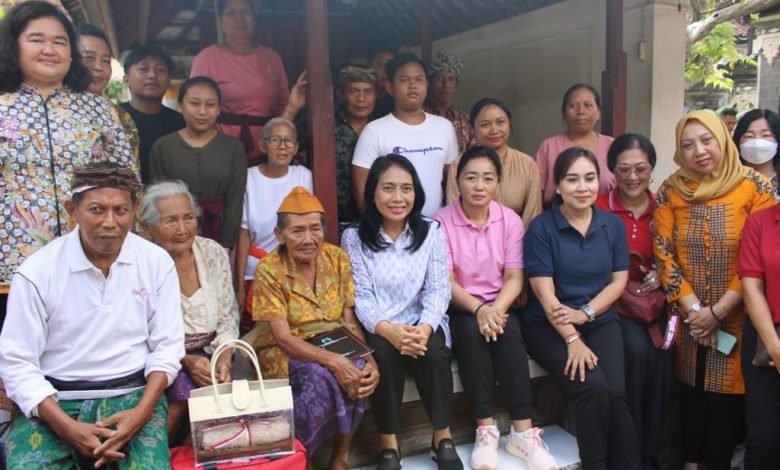 DENPASAR,jarrakposbali.com I Ketua TP. PKK Kota Denpasar, Ny. Sagung Antari Jaya Negara bersama Ketua GOW Kota Denpasar, Ny. Ayu Kristi Arya Wibawa mendampingi kunjungan Menteri Pemberdayaan Perempuan dan Perlindungan Anak (PPA) RI, I Gusti Ayu Bintang Dharmawati Puspayoga di Kota Denpasar, Kunjungan tersebut dilaksanakan serangkaian penyerahan bantuan bertajuk Anjangsana kepada veteran perempuan di Kota Denpasar, Minggu (17/12/2023).