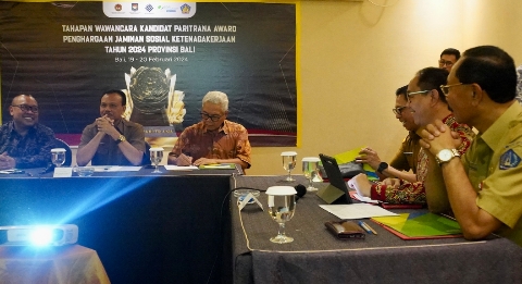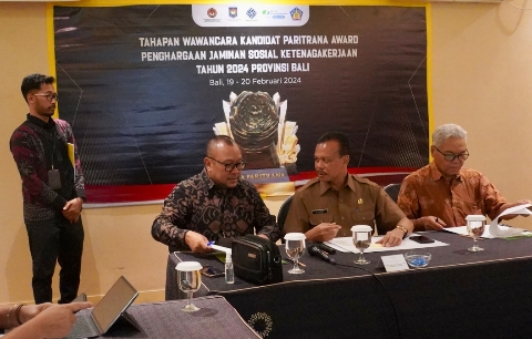 DENPASAR, jarrakposbali.com | Sekretaris Daerah Provinsi Bali Dewa Made Indra bersama beberapa anggota tim lainnya berkesempatan menjadi Tim Panelis Penghargaan Paritrana Award, melakukan wawancara langsung kepada seluruh kandidat bertempat di Hotel Four Star by Trans Hotel, Denpasar, Senin (19/2/2024).