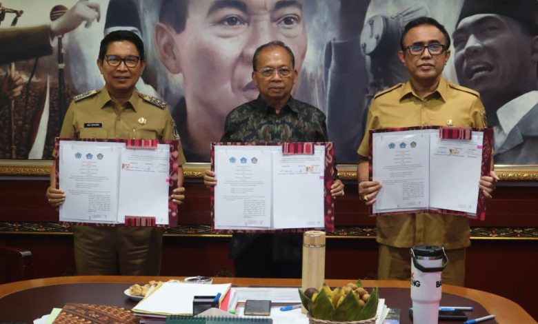 DENPASAR, jarrakposbali.com – Gubernur Bali Wayan Koster bersama Bupati Badung I Wayan Adi Arnawa dan Wali Kota Denpasar I Gusti Ngurah Jaya Negara menandatangani perjanjian kerjasama pembangunan fasilitas Pengolahan Sampah menjadi Energi Listrik (PSEL) Denpasar Raya. Penandatanganan tersebut berlangsung di Kantor Gubernur Bali, Renon, Denpasar, Senin (13/4/2026).