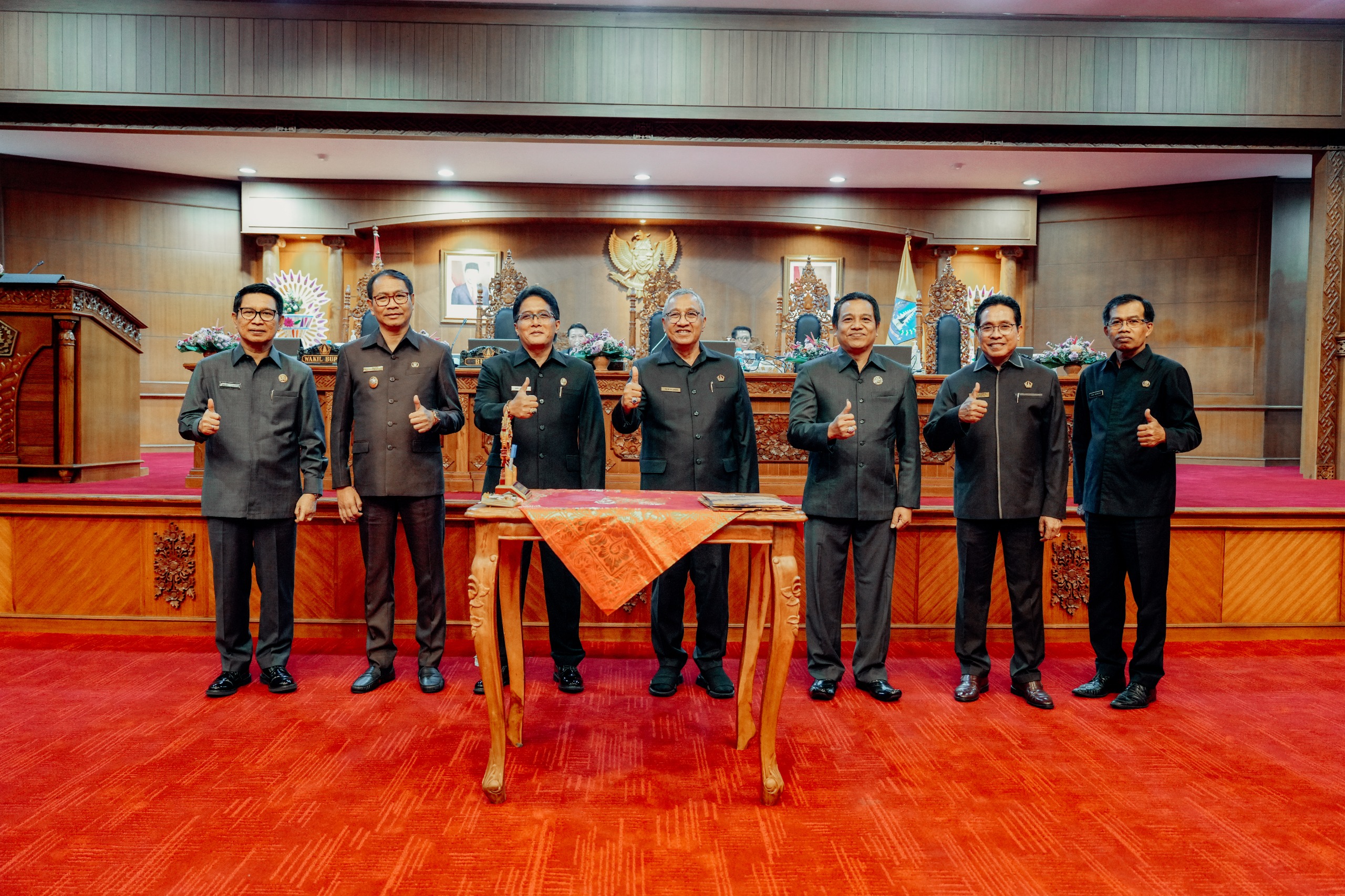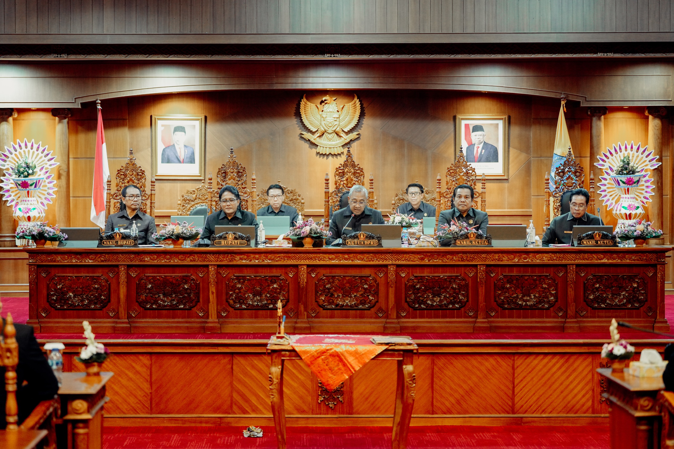 Badung Putu Parwata bersama para Pimpinan DPRD. Hadir Bupati Badung I Nyoman Giri Prasta, Wabup. I Ketut Suiasa, anggota DPRD Badung, Forkopimda, Sekda I Wayan Adi Arnawa serta Pejabat dilingkungan Pemkab Badung.
