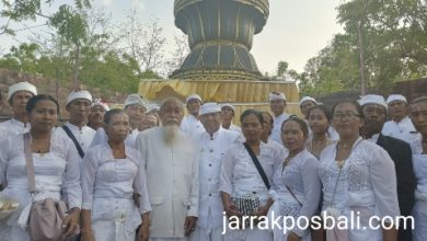 SEMARAPURA, jarrakposbali.com | Serangkaian hari lahirnya yang ke – 3 perkumpulan pemangku atau SANGKU, Desa Adat Bakas, laksanakan Tirta Yatra…