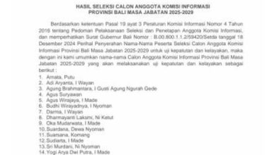 DENPASAR, jarrakposbali.com | Pengumuman Resmi hasil Seleksi Calon Anggota Komisi Informasi Provinsi Bali Masa Jabatan 2025-2029