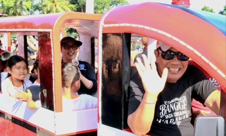 Usai senam bersama, kegiatan dilanjutkan dengan Launching Kereta Anak, yang ditandai dengan pengguntingan pita oleh Bupati Tabanan Dr. I Komang Gede Sanjaya, didampingi Bunda PAUD Kabupaten Tabanan Ny. Rai Wahyuni Sanjaya dan jajaran. Terdapat dua unit kereta anak dengan panjang lintasan sekitar 300 meter, yang diharapkan menjadi wahana hiburan edukatif bagi anak-anak, sekaligus sarana rekreasi keluarga di kawasan Lapangan Alit Saputra. Kehadiran fasilitas ini sangat sejalan dengan membangun Tabanan yang Aman, Unggul, dan Madani.